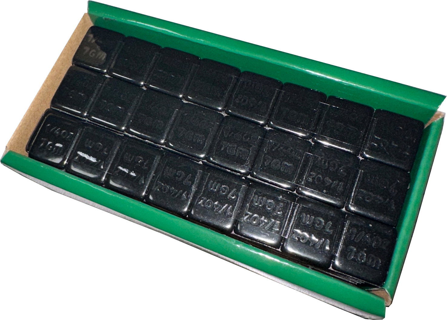 1/4 oz Black Stick-on Weights on White USA Tape, 240 Segments/Box
